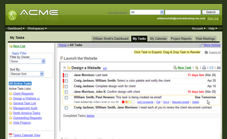 - Central Desktop: A glossy project management tool with benefits that include secure logon and easily managed tasks and documents. Cost is a limitation for projects that need large storage space.